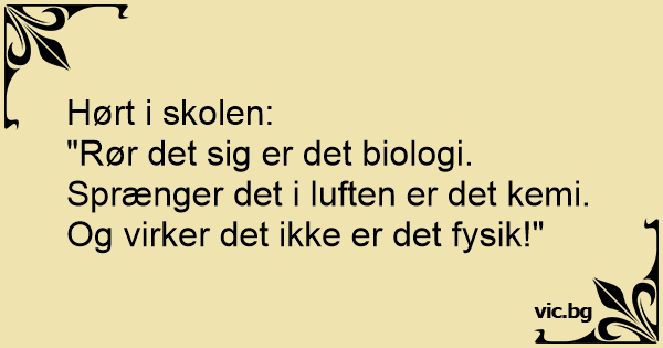 "Rør det sig er det biologi. Sprænger det i luften er det kemi. Og virker det ikke er det fysik!"