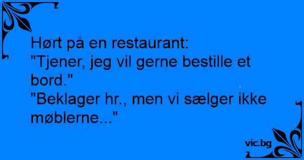 Et ægteparret gik ind på en restaurant og spurgte tjeneren “Kan vi bestille et bord?” – Så svarer tjeneren “Nej desværre, vi sælger mad ikke borde”.