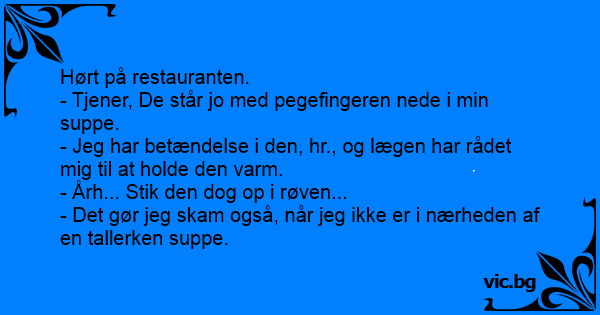 - Tjener, De står jo med pegefingeren nede i min suppe.