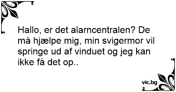 Hallo, er det alarncentralen? De må hjælpe mig, min svigermor vil springe ud af vinduet og jeg kan ikke få det op..