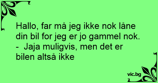 Hallo, far må jeg ikke nok låne din bil for jeg er jo gammel nok.