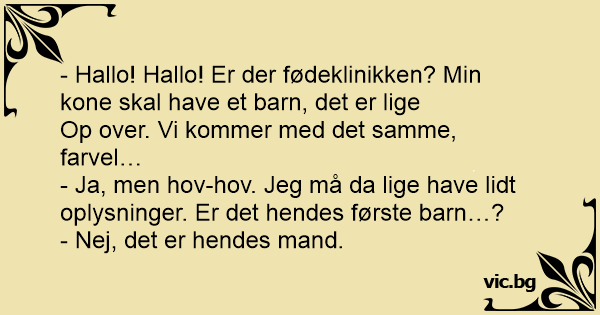 - Hallo! Hallo! Er der fødeklinikken? Min kone skal have et barn, det er lige