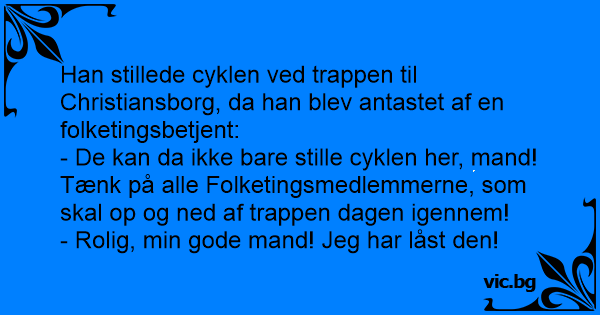 - De kan da ikke bare stille cyklen her, mand! Tænk på alle Folketingsmedlemmerne, som skal op og ned af trappen dagen igennem!