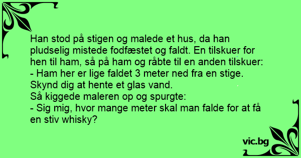- Sig mig, hvor mange meter skal man falde for at få en stiv whisky?