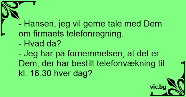 - Jeg har på fornemmelsen, at det er Dem, der har bestilt telefonvækning til kl. 16.30 hver dag?