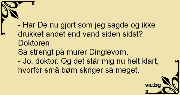 - Har De nu gjort som jeg sagde og ikke drukket andet end vand siden sidst? Doktoren