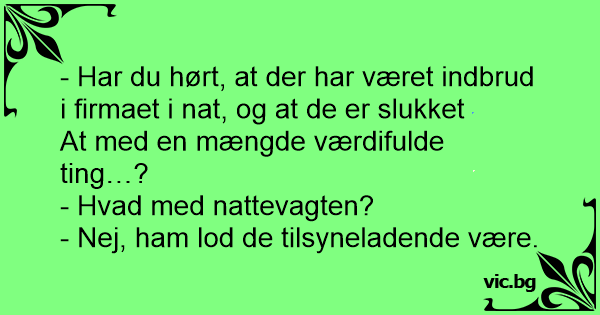 - Har du hørt, at der har været indbrud i firmaet i nat, og at de er slukket