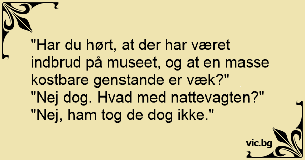 "Har du hørt, at der har været indbrud på museet, og at en masse kostbare genstande er væk?"