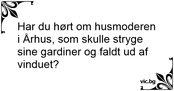 Har du hørt om husmoderen i Århus, som skulle stryge sine gardiner og faldt ud af vinduet?