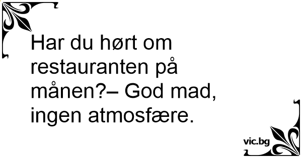 Har du hørt om restauranten på månen?– God mad, ingen atmosfære.