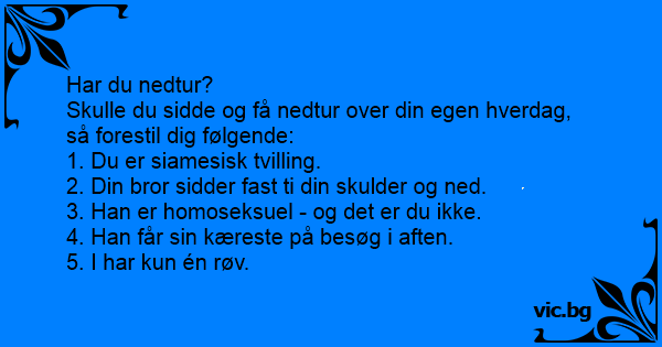 Skulle du sidde og få nedtur over din egen hverdag, så forestil dig følgende: