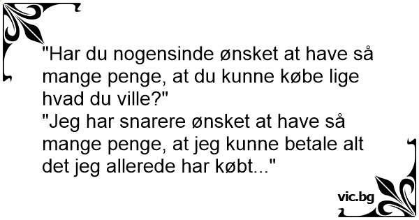 "Har du nogensinde ønsket at have så mange penge, at du kunne købe lige hvad du ville?"
