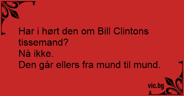 Har i hørt den om Bill Clintons tissemand?<br />Nå ikke.<br />Den går ellers fra mund til mund.