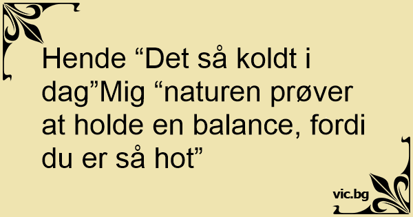 Hende “Det så koldt i dag”Mig “naturen prøver at holde en balance, fordi du er så hot”