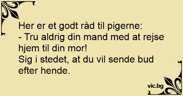 - Tru aldrig din mand med at rejse hjem til din mor!