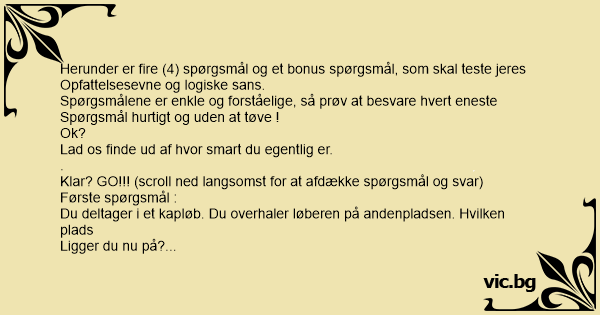 Klar? GO!!! (scroll ned langsomst for at afdække spørgsmål og svar)