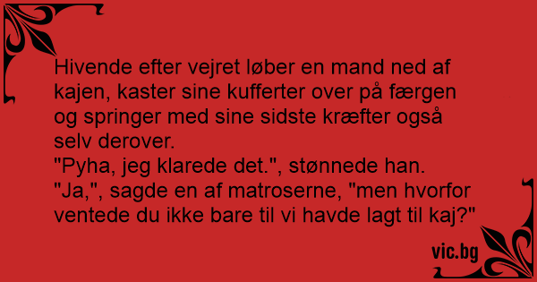 "Ja,", sagde en af matroserne, "men hvorfor ventede du ikke bare til vi havde lagt til kaj?"