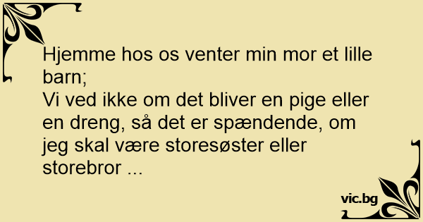 Hjemme hos os venter min mor et lille barn;