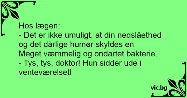 - Tys, tys, doktor! Нun sidder ude i venteværelset!