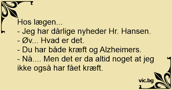 - Nå.... Men det er da altid noget at jeg ikke også har fået kræft.
