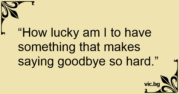 “How lucky am I to have something that makes saying goodbye so hard.”