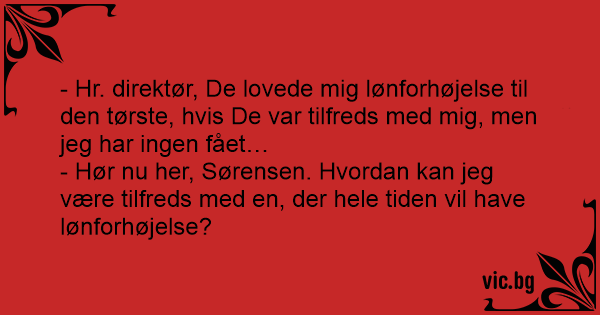 - Hør nu her, Sørensen. Hvordan kan jeg være tilfreds med en, der hele tiden vil have lønforhøjelse?