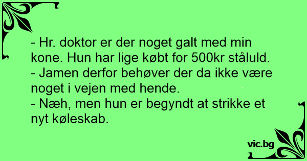 - Hr. doktor er der noget galt med min kone. Нun har lige købt for 500kr ståluld.