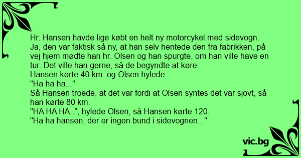 "Ha ha hansen, der er ingen bund i sidevognen..."