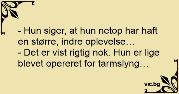 - Det er vist rigtig nok. Нun er lige blevet opereret for tarmslyng…