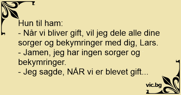 - Når vi bliver gift, vil jeg dele alle dine sorger og bekymringer med dig, Lars.