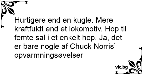 Hurtigere end en kugle. Mere kraftfuldt end et lokomotiv. Hop til femte sal i et enkelt hop. Ja, det er bare nogle af Chuck Norris’ opvarmningsøvelser