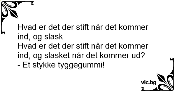 Hvad er det der stift når det kommer ind, og slasket når det kommer ud?
