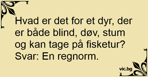Hvad er det for et dyr, der er både blind, døv, stum og kan tage på fisketur?