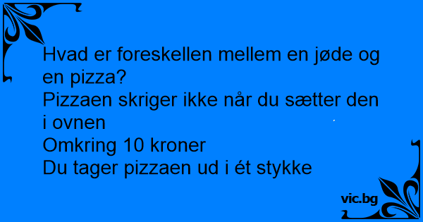 Pizza Hvad er forskellen på en Jøde og en pizza? – Pizzaen skriger ikke når de bliver puttet i ovnen