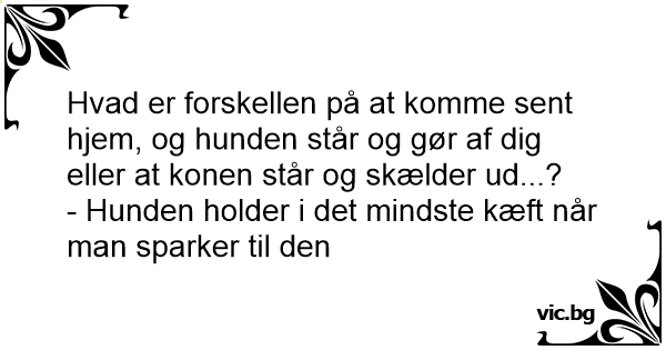 Hvad er forskellen på at komme sent hjem, og hunden står og gør af dig eller at konen står og skælder ud...?