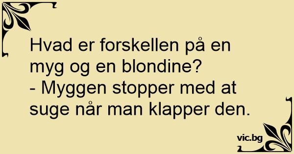 Hvad er forskellen på en blondine og en myg? Hvad er forskellen på en blondine og en myg? - En myg holder selv op med suge, når den har fået nok!