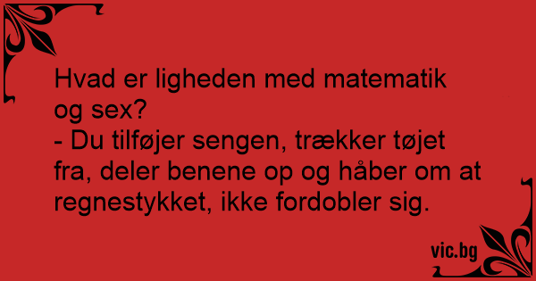 - Du tilføjer sengen, trækker tøjet fra, deler benene op og håber om at regnestykket, ikke fordobler sig.