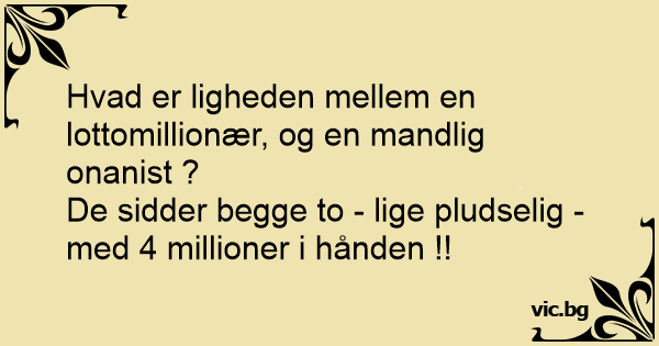 Hvad er ligheden mellem at onanere og spille lotto Hvad er ligheden mellem at onanere og spille lotto? - Pludselig står man med 10 millioner i hånden!