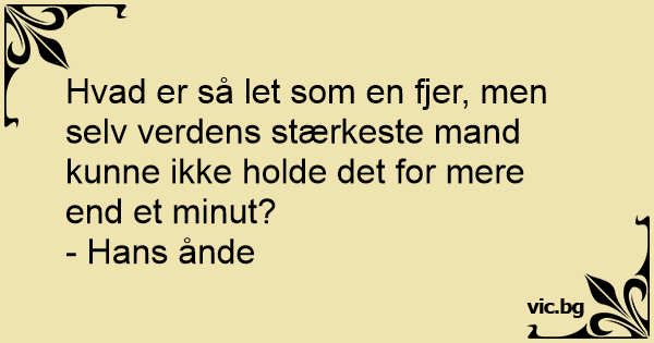 Hvad er så let som en fjer, men selv verdens stærkeste mand kunne ikke holde det for mere end et minut?