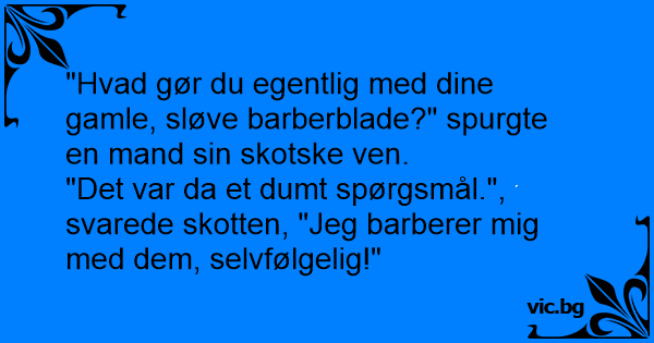"Det var da et dumt spørgsmål.", svarede skotten, "Jeg barberer mig med dem, selvfølgelig!"