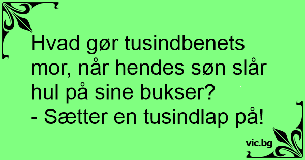 Hvad gør tusindbenets mor, når hendes søn slår hul på sine bukser?