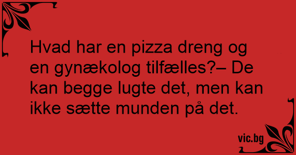 Hvad har en pizza dreng og en gynækolog tilfælles?– De kan begge lugte det, men kan ikke sætte munden på det.