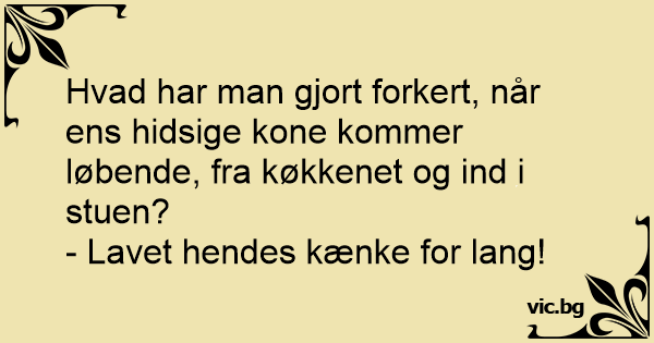 Hvad har man gjort forkert, når ens hidsige kone kommer løbende, fra køkkenet og ind i stuen?