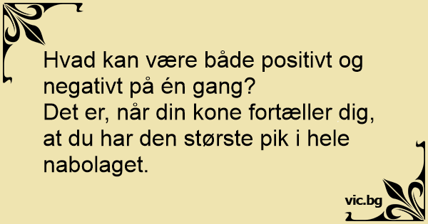 Det er, når din kone fortæller dig, at du har den største pik i hele nabolaget.