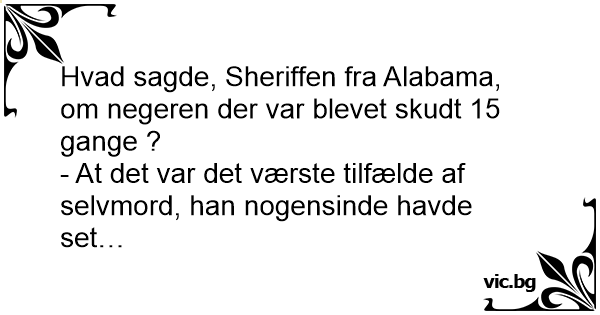 In anul 1854 este gasit un negru mort cu 18 glonte in spate. Seriful face constatarea si zice : - MMAAAAMAAAA ,asa sinucidere n-am mai intalnit.