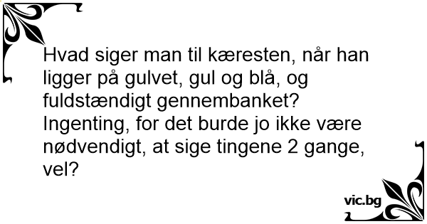 Hvad siger man til kæresten, når han liggеr på gulvet, gul og blå, og fuldstændigt gennembanket?