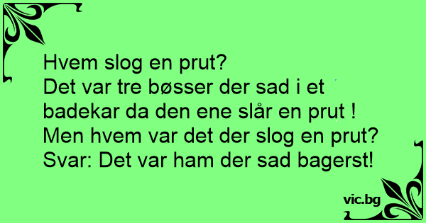Det var tre bøsser der sad i et badekar da den ene slår en prut ! Men hvem var det der slog en prut?