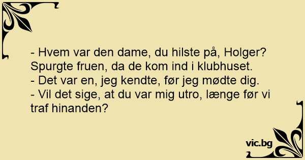 - Hvem var den dame, du hilste på, Holger? Spurgte fruen, da de kom ind i klubhuset.