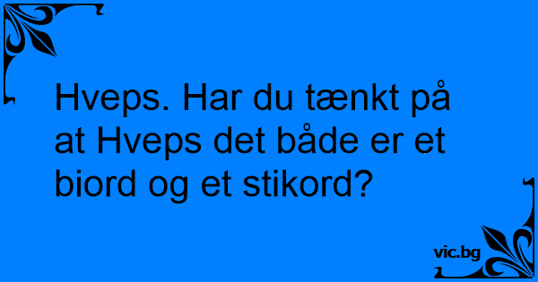 Hveps. Har du tænkt på at Hveps det både er et biord og et stikord?