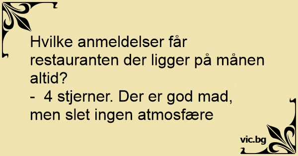 Har du hørt om restauranten på månen?– God mad, ingen atmosfære.